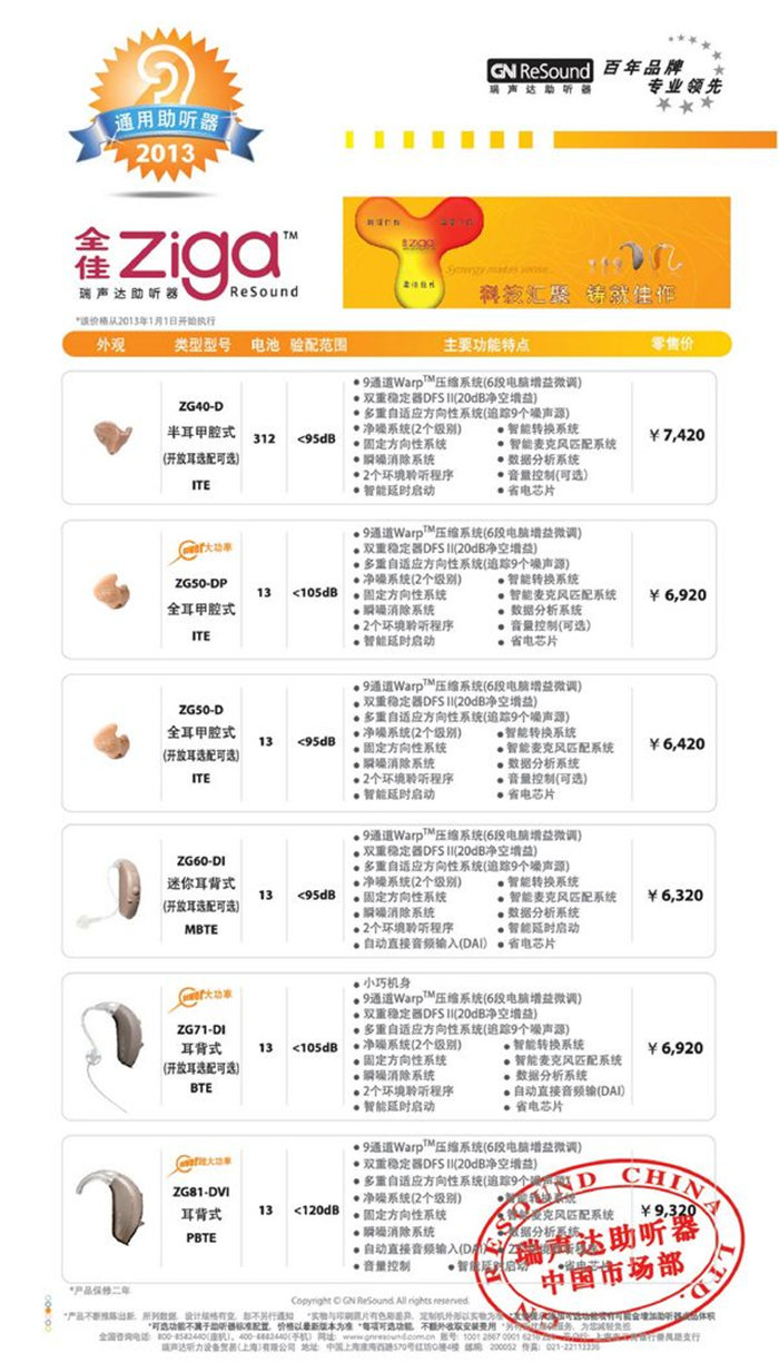 其他助听器价格表