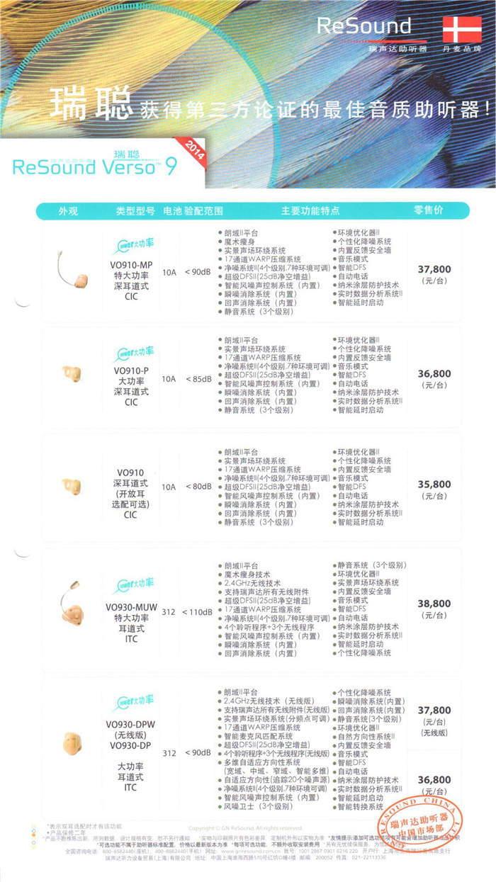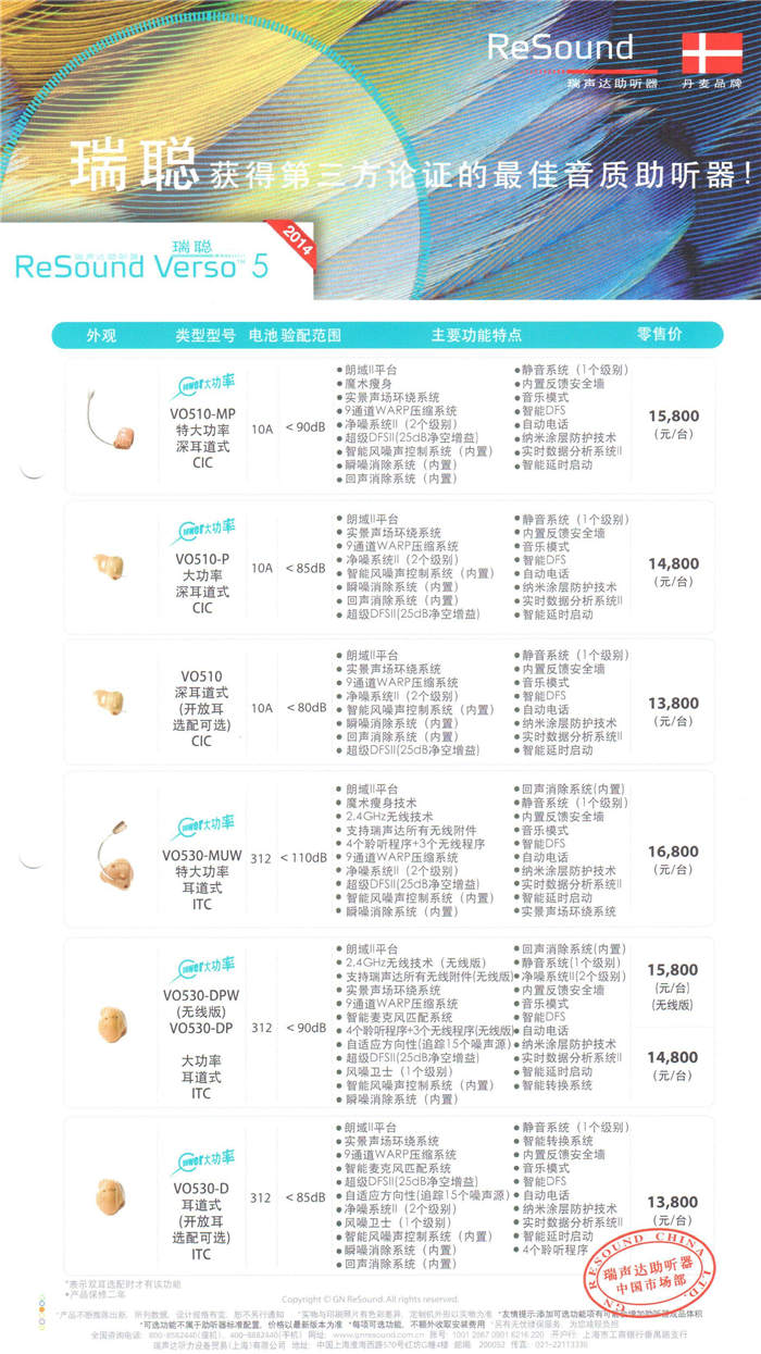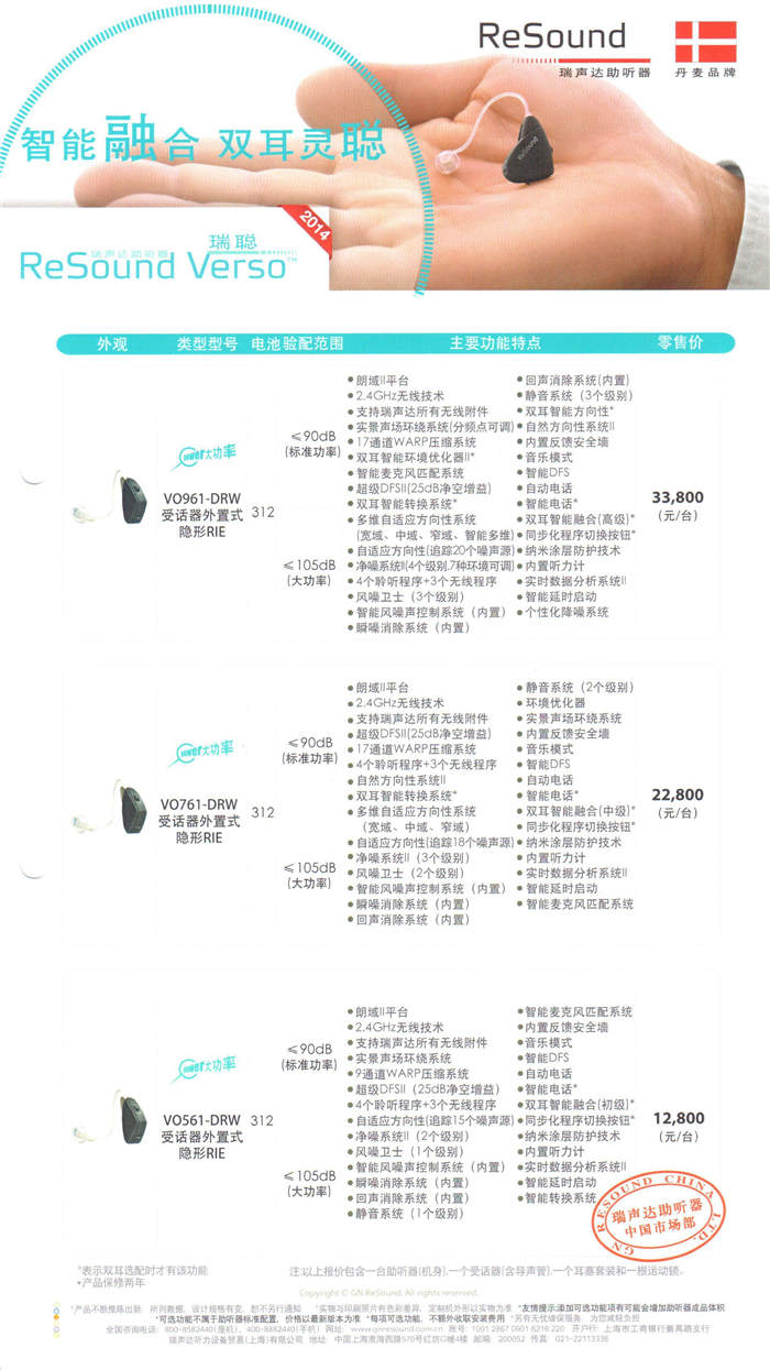 瑞声达Verso瑞聪5系列助听器