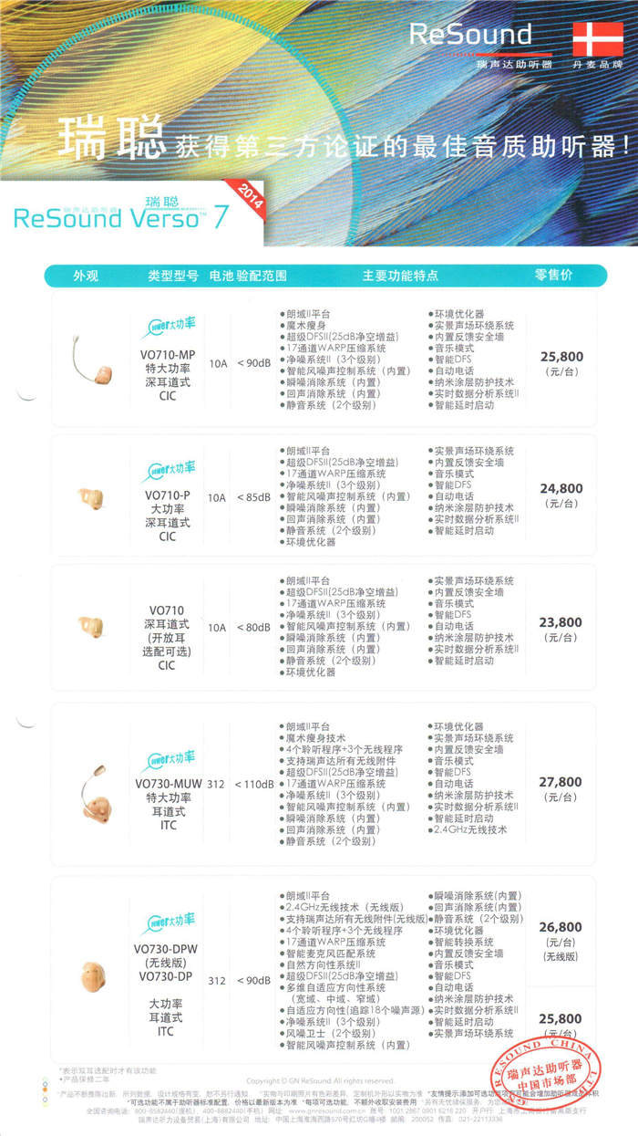 瑞声达Verso瑞聪7系列助听器