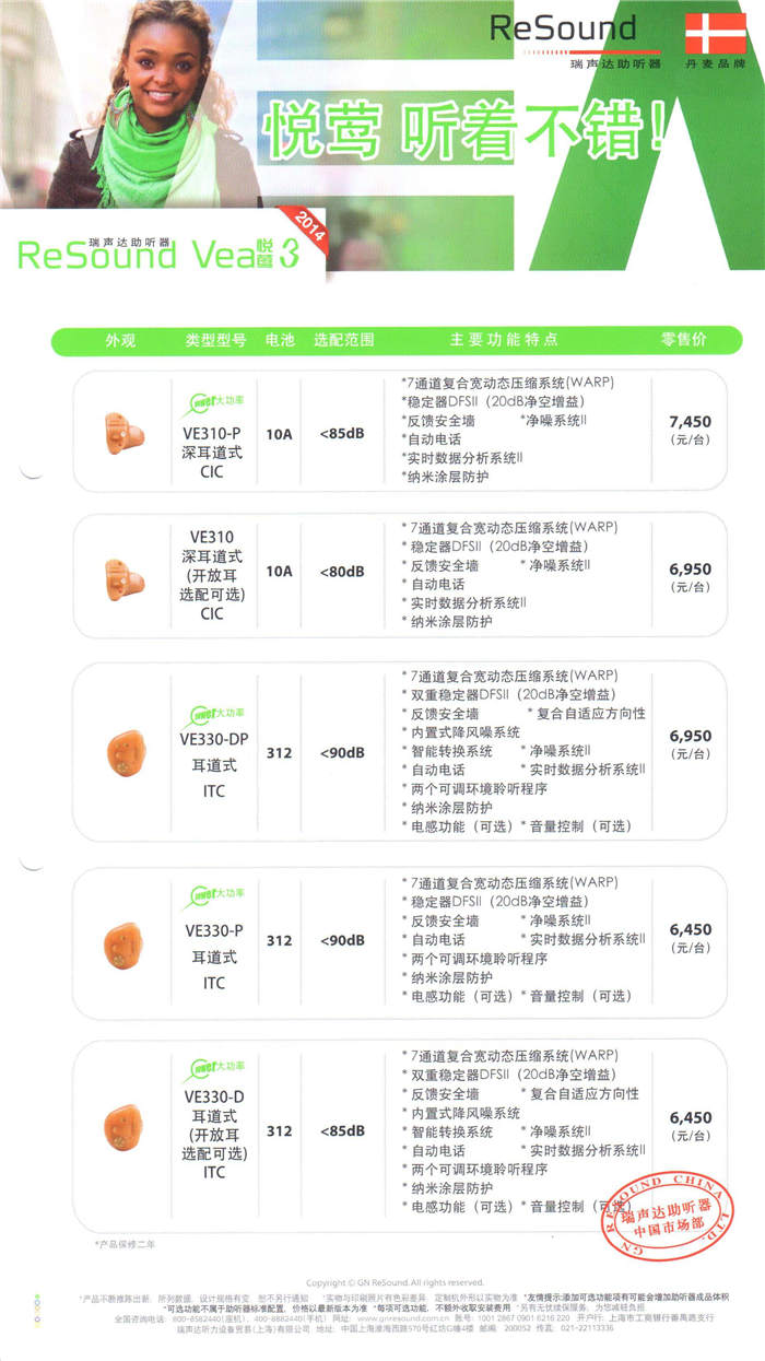 瑞声达助听器价格表