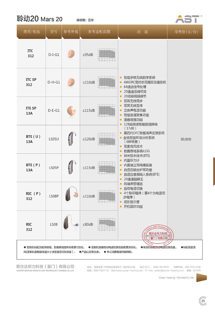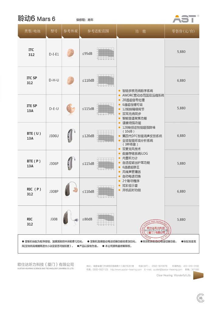 欧仕达助听器价格表