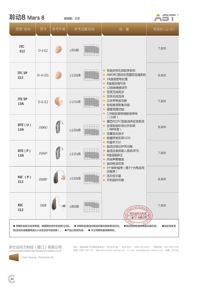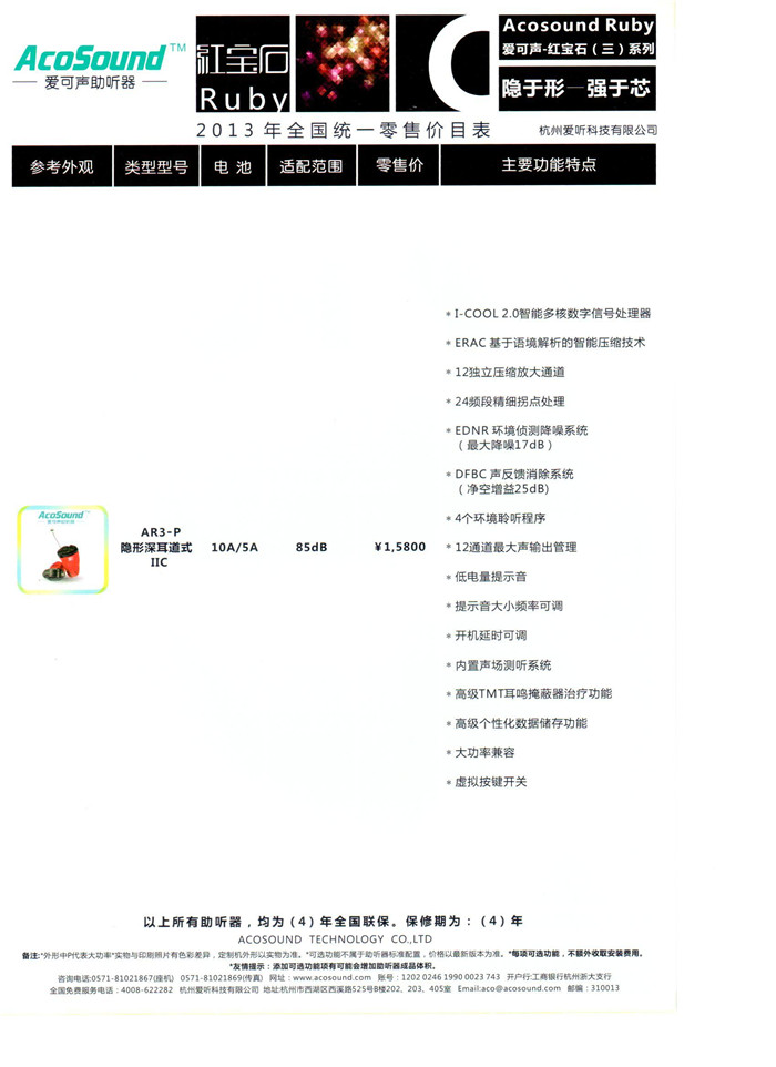 杭州爱可声助听器【红宝石三】系列全国统一助听器价格表¥15800