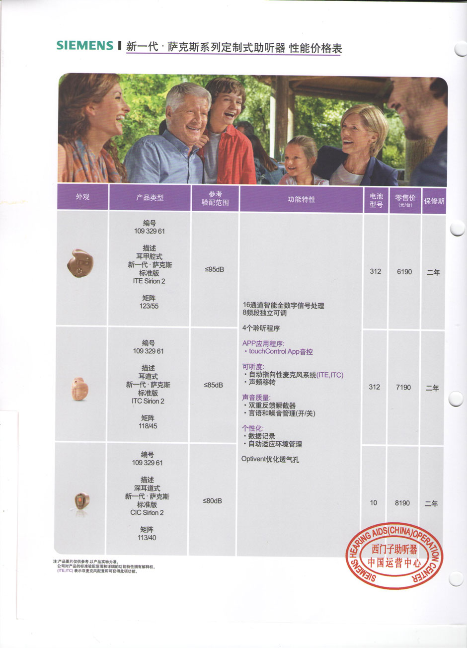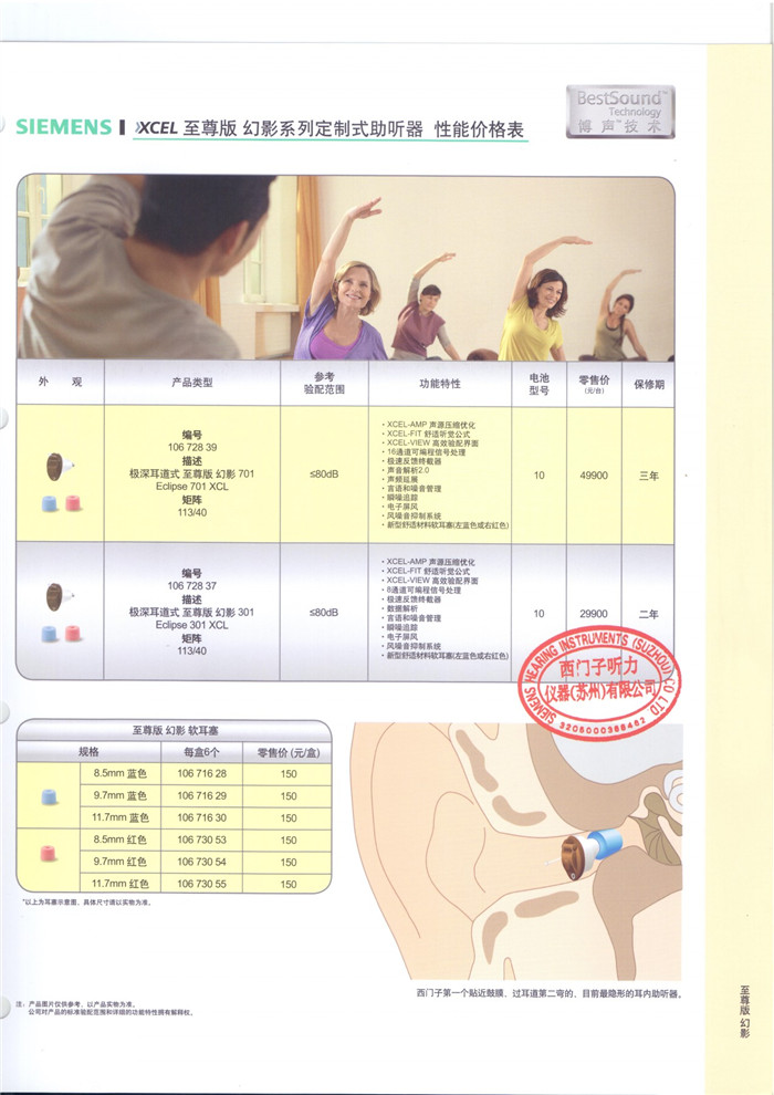 西门子助听器至尊版【幻影】系列定制式助听器性能价格表(西门子最小的助听器)