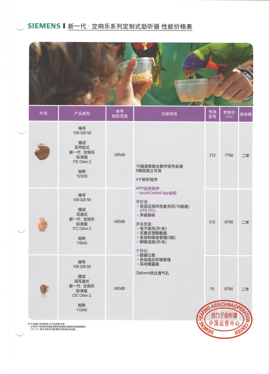 西门子助听器价格表