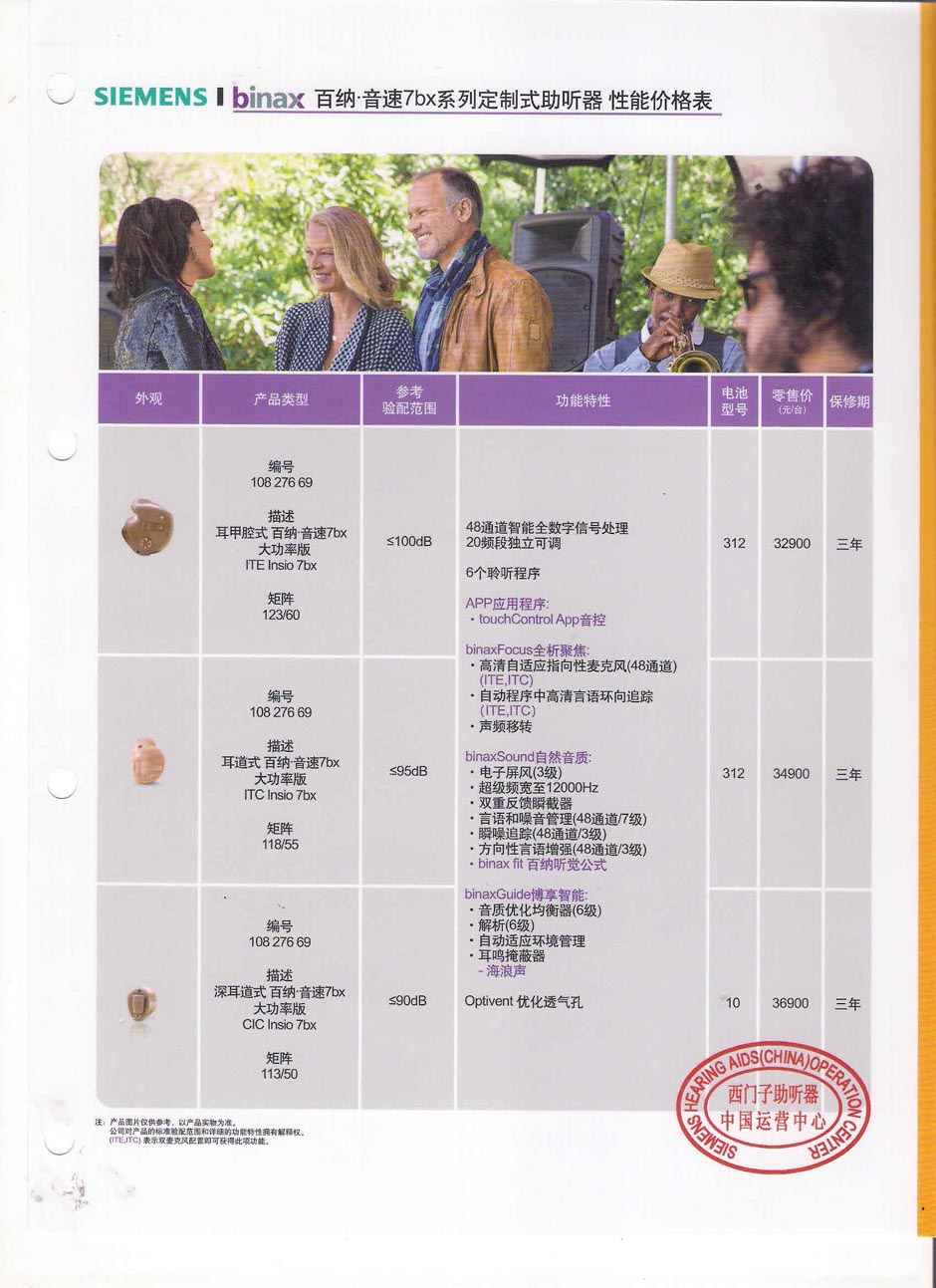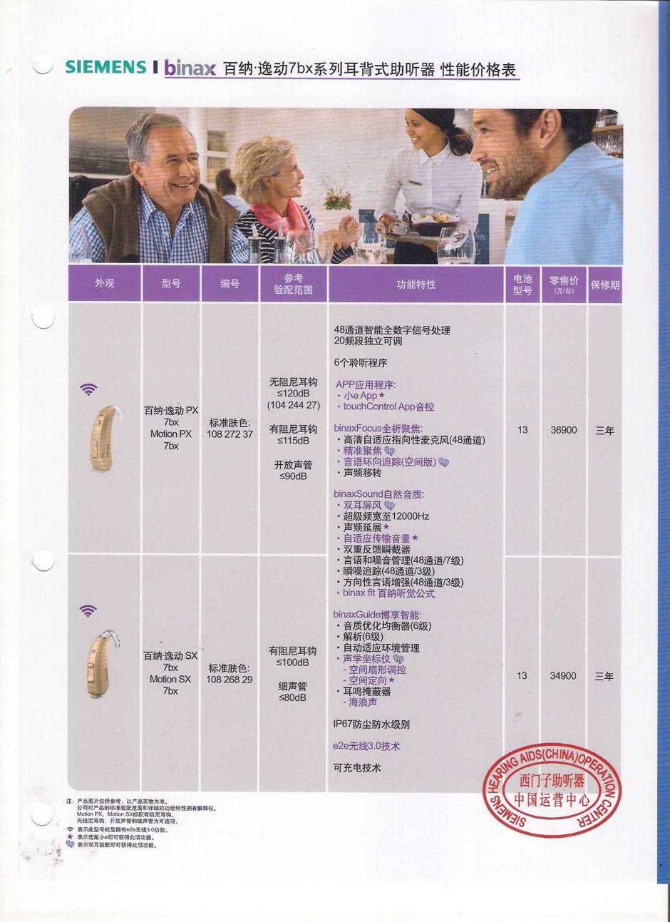 西门子百纳音速7bx系列助听器