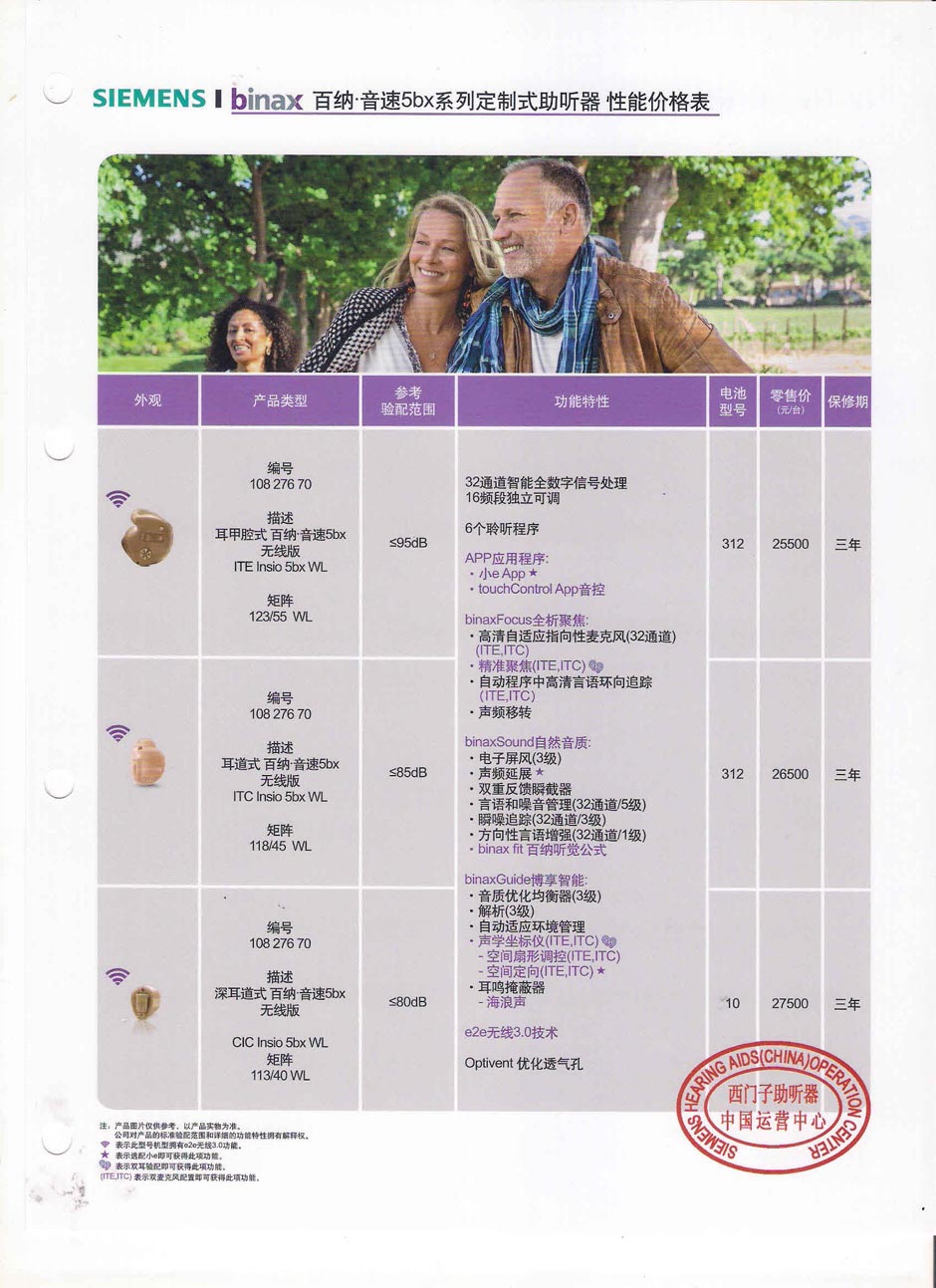 西门子百纳音速5bx系列助听器