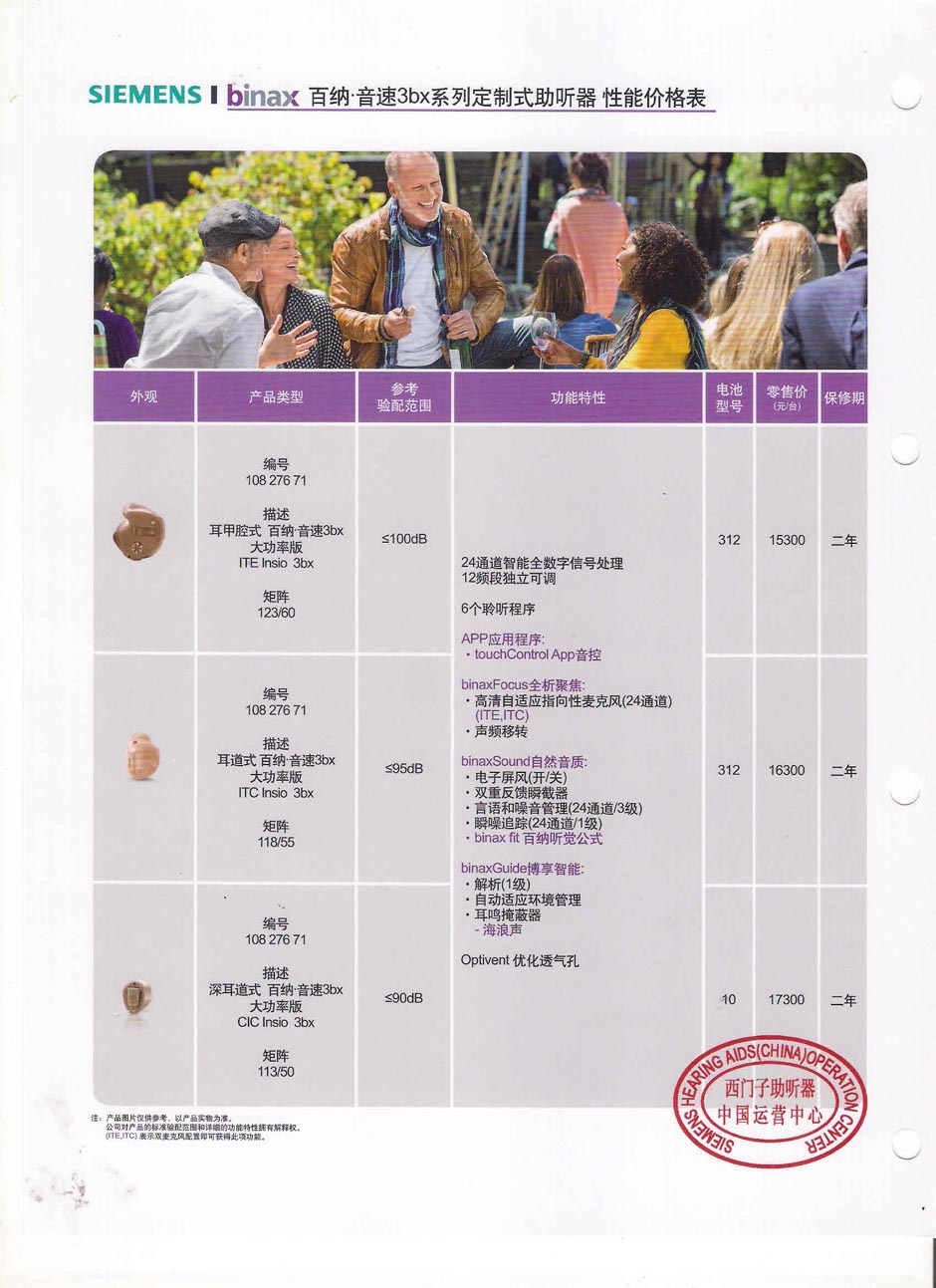 西门子百纳音速3bx系列助听器